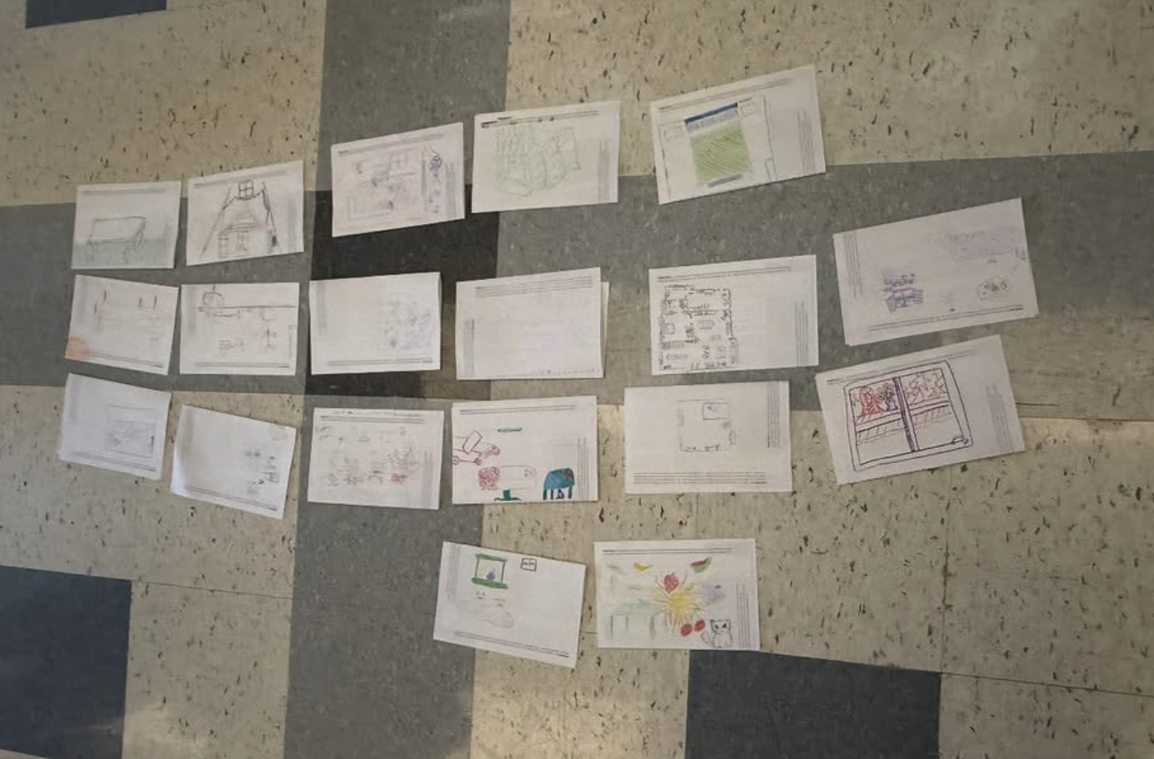Once we have all of these, I will ask everyone to pick one of these spaces and draw it, approximating from the memory the location of objects, walls, people, etc.